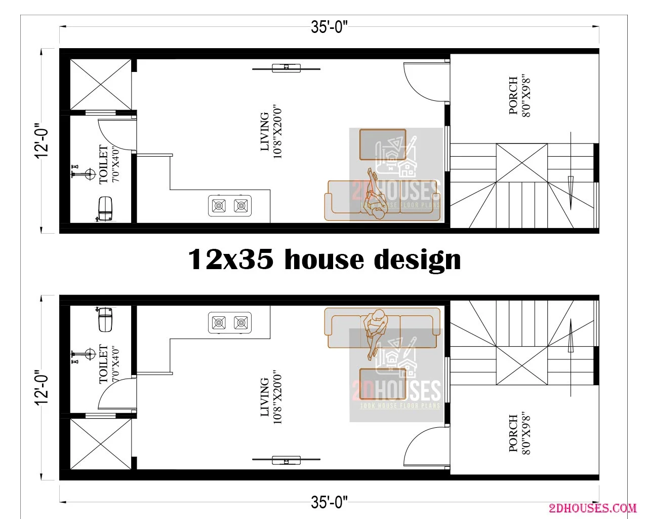 This is a beautiful, 12x35 ghar ka naksha map with a built-up area of 420 sq ft and an east-facing orientation. It is best suited for a small family of three members. Additionally, the floor plan includes one bedroom, one toilet, a spacious living hall, and a modular kitchen with an attached wash area.